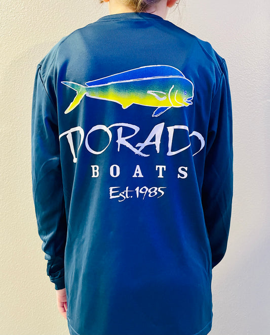 Youth Navy Long Sleeve Microfiber Performance Shirt with SPF 30