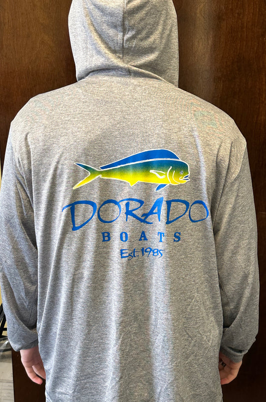 Grey Long Sleeve w/HOOD Microfiber Performance Shirt with SPF 30