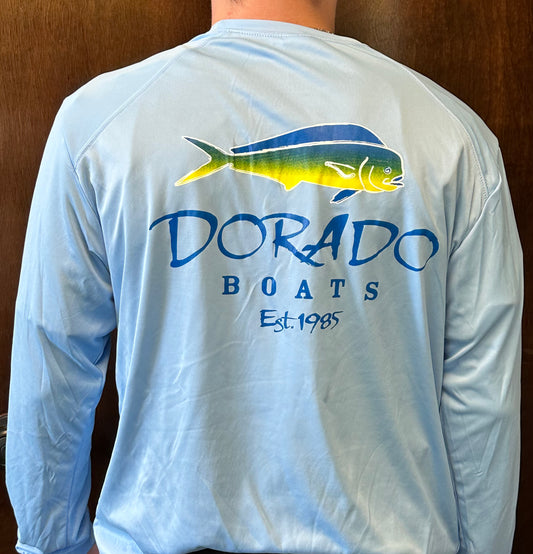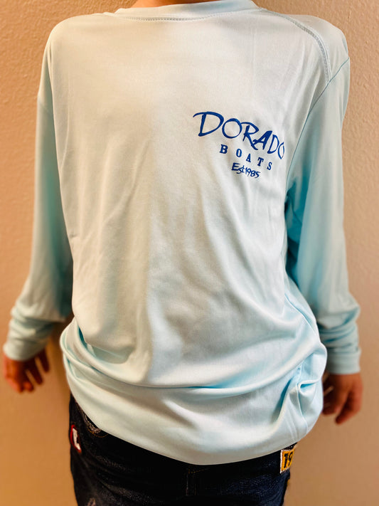 Youth Aqua Blue Long Sleeve Microfiber Performance Shirt with SPF 30