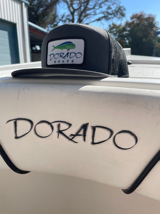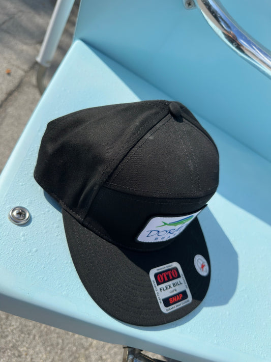 Black Flat Bill Hat - 7 Panel Trucker #168